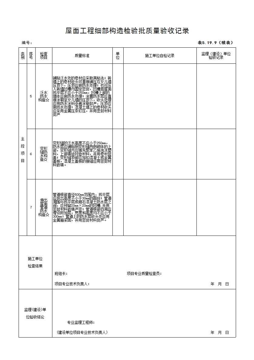 表格名称:5.19.9 屋面工程细部构造检验批质量验收记录