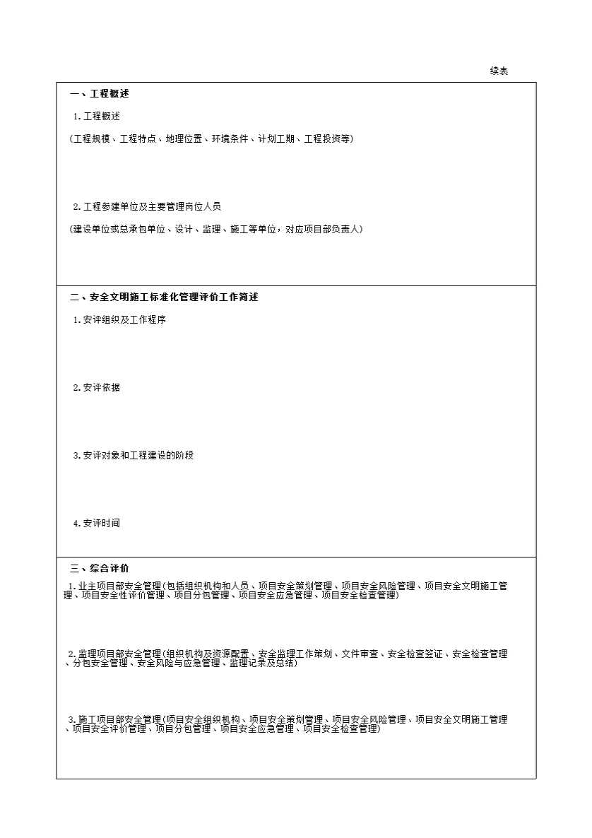 表格名称:输变电工程项目安全文明施工标准化管理评价报告