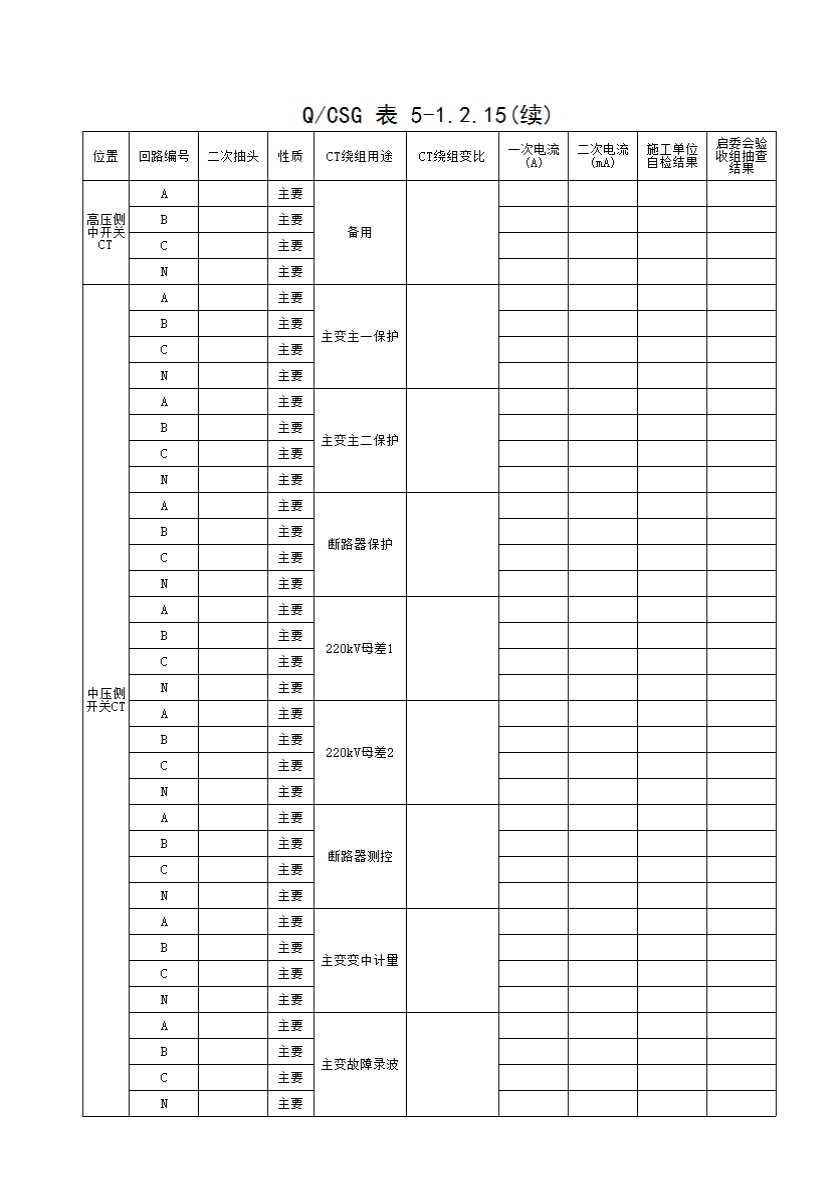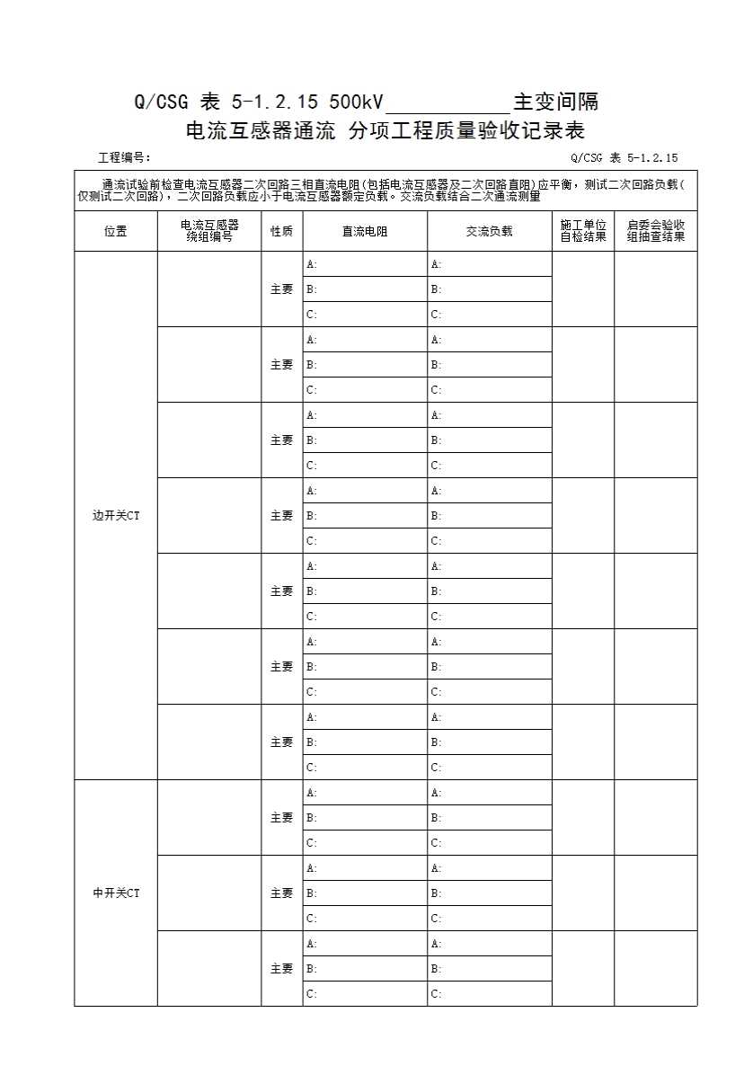 表格名称:QCSG 表 5-1.2.15 500kV_____主变间隔 电流互感器通流 分项工程质量验收记录表