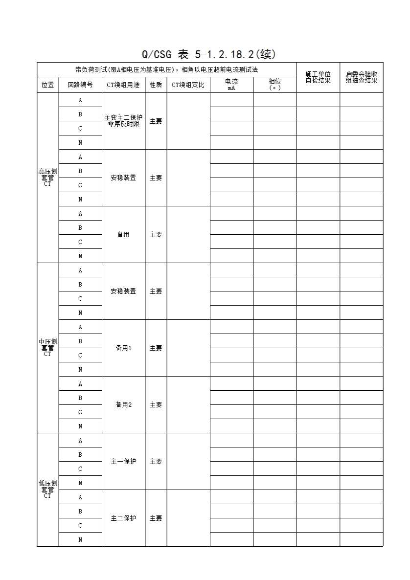 QCSG 表 5-1.2.18.2 500kV_____主变间隔 带负荷测试 分项工程质量验收记录表