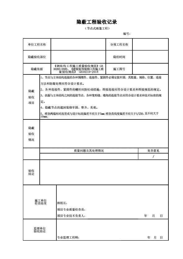 表格名称:隐蔽工程验收记录(节点式雨篷工程)