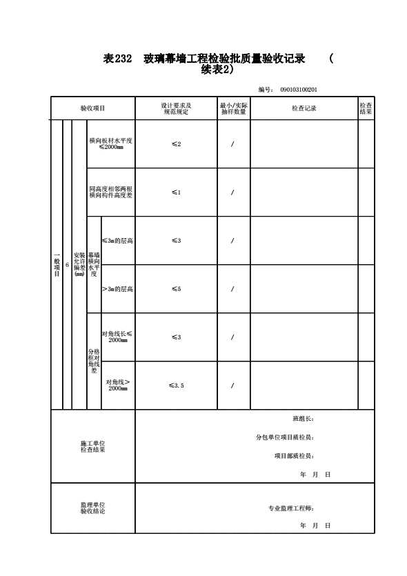 表格名称:090103100201 金属幕墙工程检验批质量验收记录