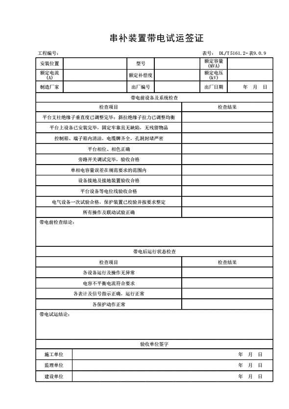 7 DLT5161.2-表9.0.9 串联电容补偿装置带电试运