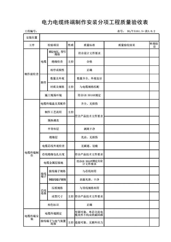 表格名称:表3.0.2 电力电缆终端制作安装分项工程质量验收表