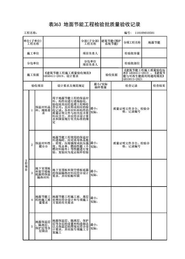 表格名称:110109010501 地面节能工程检验批质量验收记录