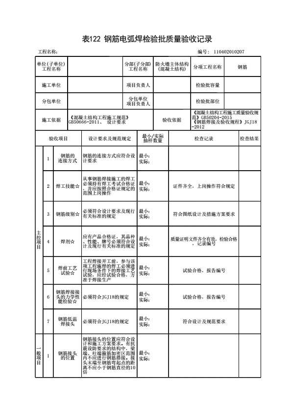 表格名称:110402010207 钢筋电弧焊检验批质量验收记录