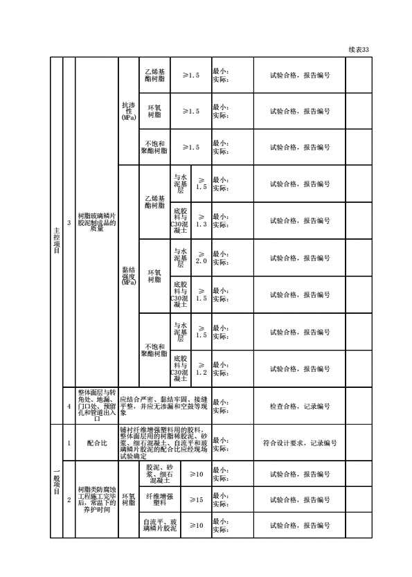 表格名称:130202010406 树脂类防腐蚀工程检验批质量验收记录