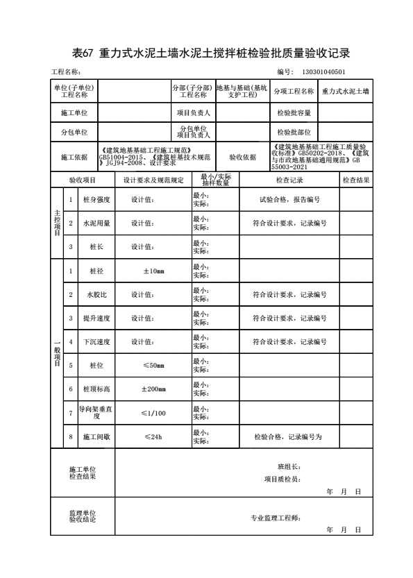 表格名称:130301040501 水泥土搅拌桩检验批质量验收记录