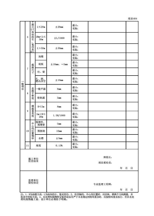 表格名称:130302010501 混凝土结构水处理构筑物检验批质量验收记录