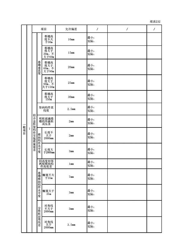 表格名称:140203100101 玻璃幕墙工程检验批质量验收记录