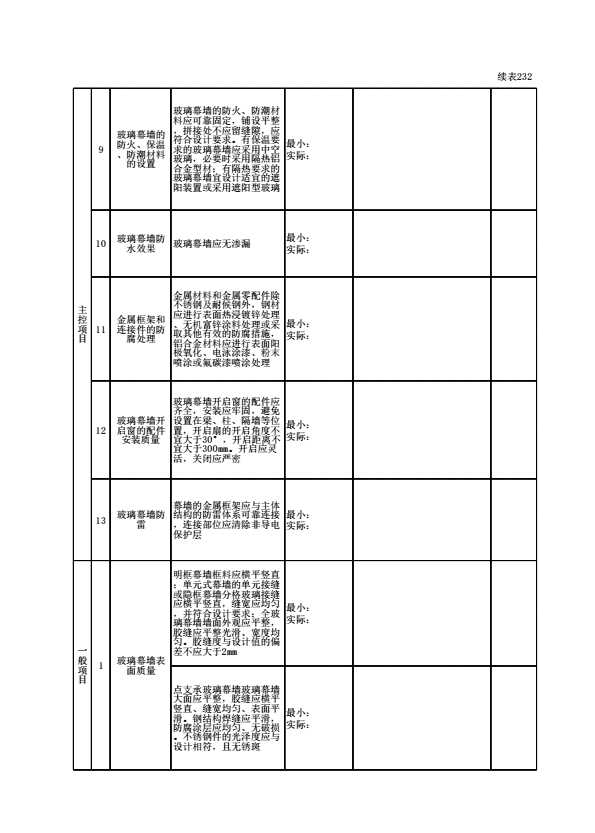表格名称:150103100101 玻璃幕墙工程检验批质量验收记录