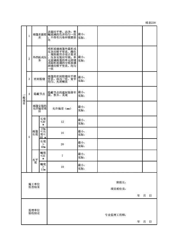 表格名称:150303130601 雨篷(节点式)检验批质量验收记录
