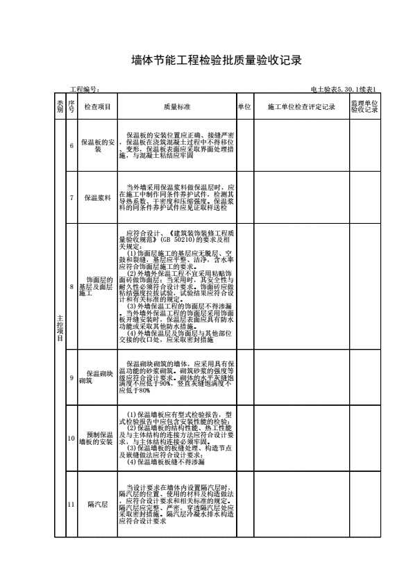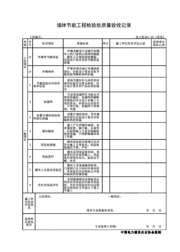 表格名称:电土验表5.30.1 墙体节能工程检验批质量验收记录