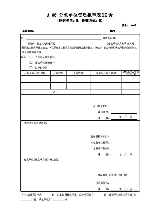 A-06 分包单位资质报审表(H)★