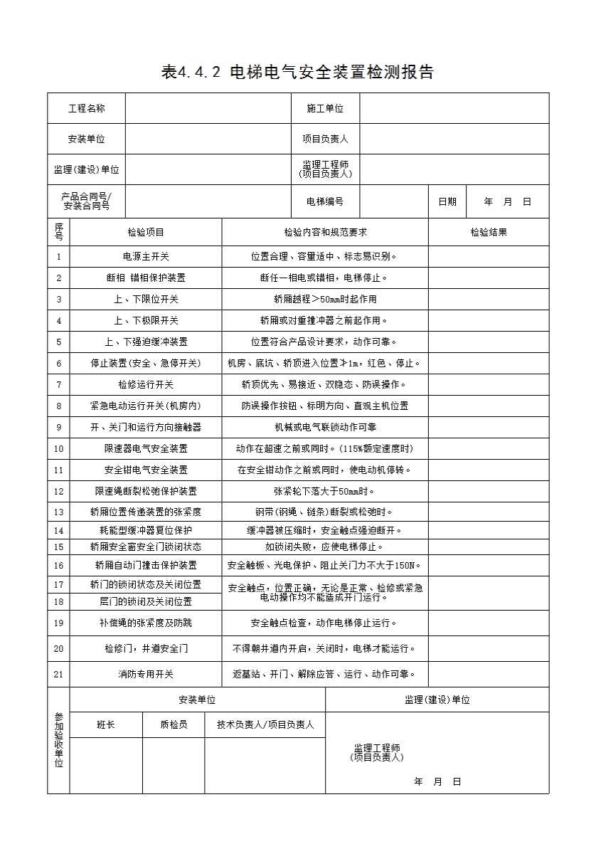 表格名称:表4.4.2 电梯电气安全装置检测报告