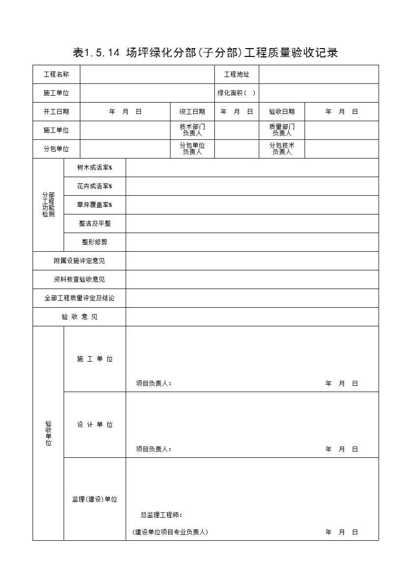 表格名称:表1.5.14 场坪绿化分部(子分部)工程质量验收记录