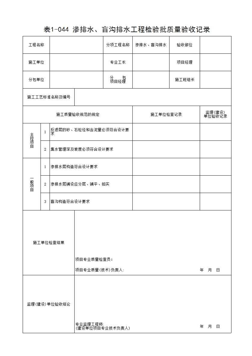 表格名称:表1-044 渗排水、盲沟排水工程检验批质量验收记录
