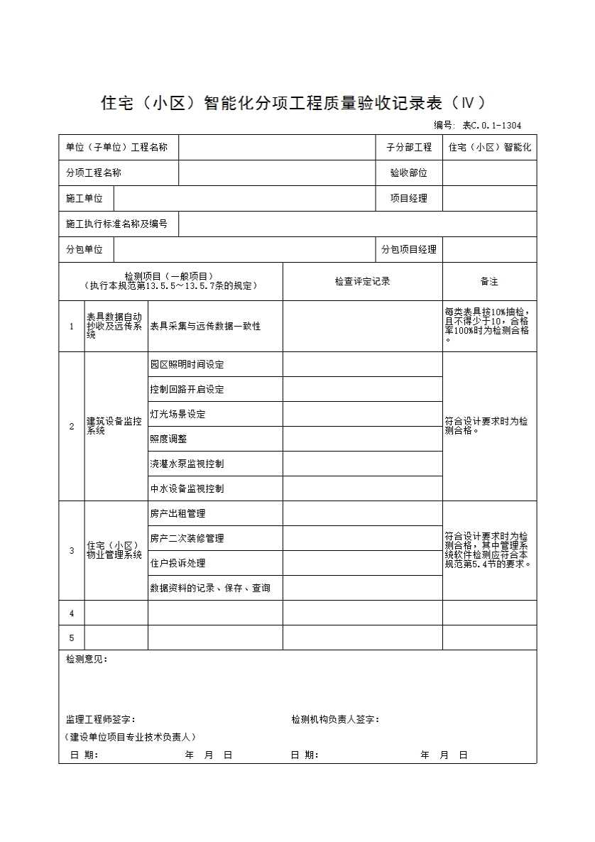 表格名称:表C.0.1-1304 住宅(小区)智能化分项工程质量验收记录表(Ⅳ)