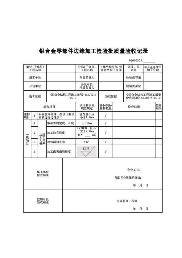 02060303_铝合金零部件边缘加工检验批质量验收记录