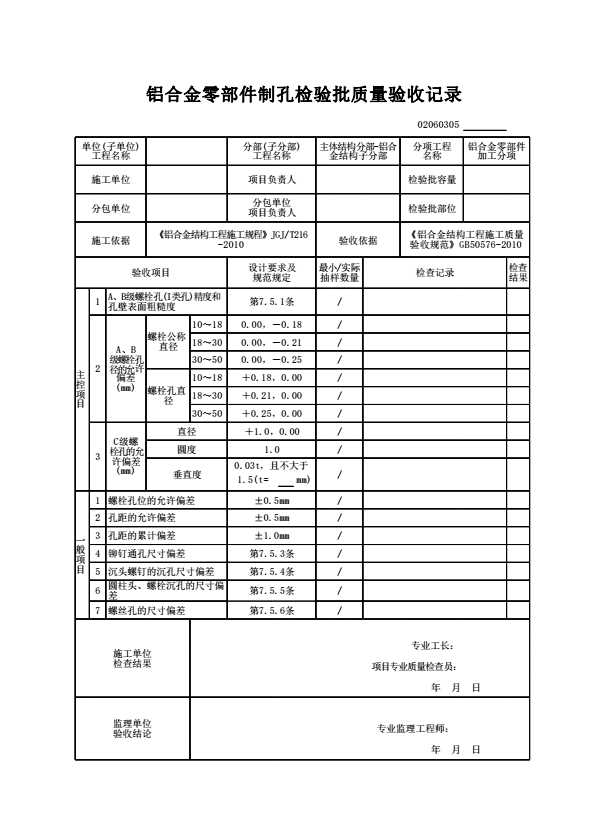 本表适用于铝合金结构制作及安装中铝合金零件及部件加工的质量验收。