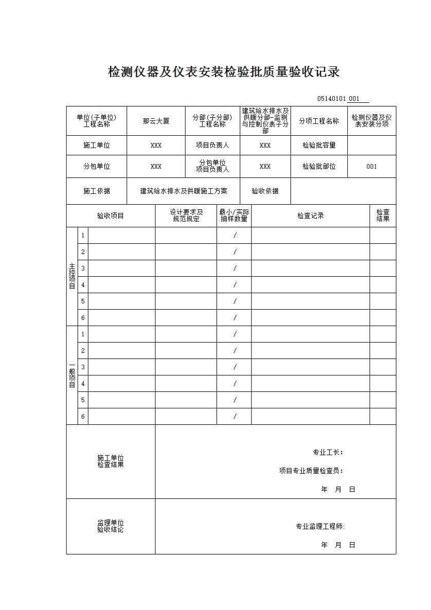 表格名称:05140101_检测仪器及仪表安装检验批质量验收记录
