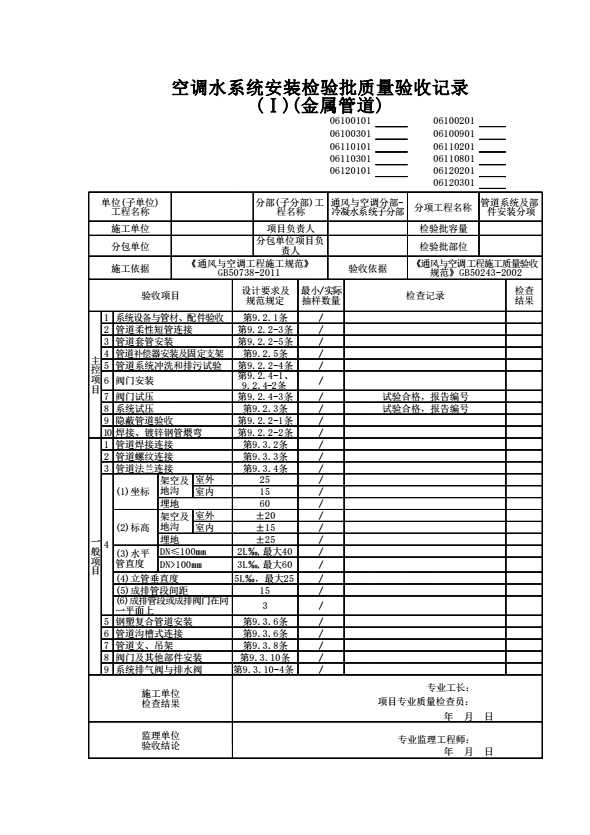 空调水系统安装检验批质量验收记录(Ⅰ)(金属管道)