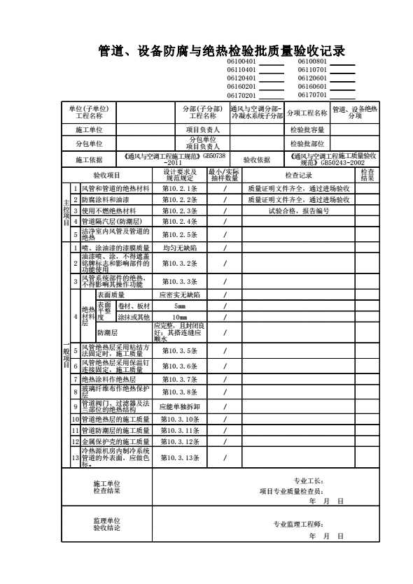 06100801_管道、设备防腐与绝热检验批质量验收记录