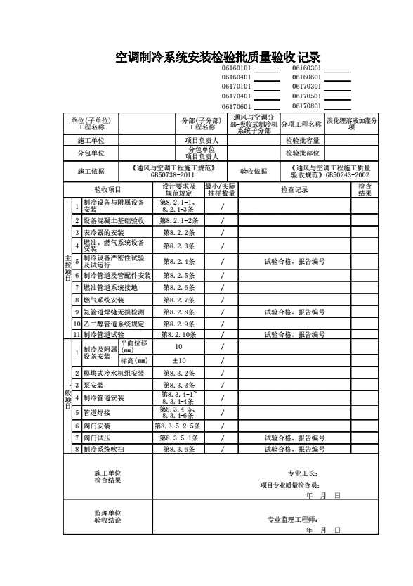 1 制冷设备、制冷附属设备的型号、规格和技术参数必须符合设计要求,并具有产品合格证书、产品性能检验报告;