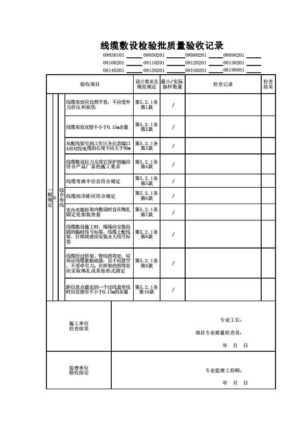 08100201_线缆敷设检验批质量验收记录
