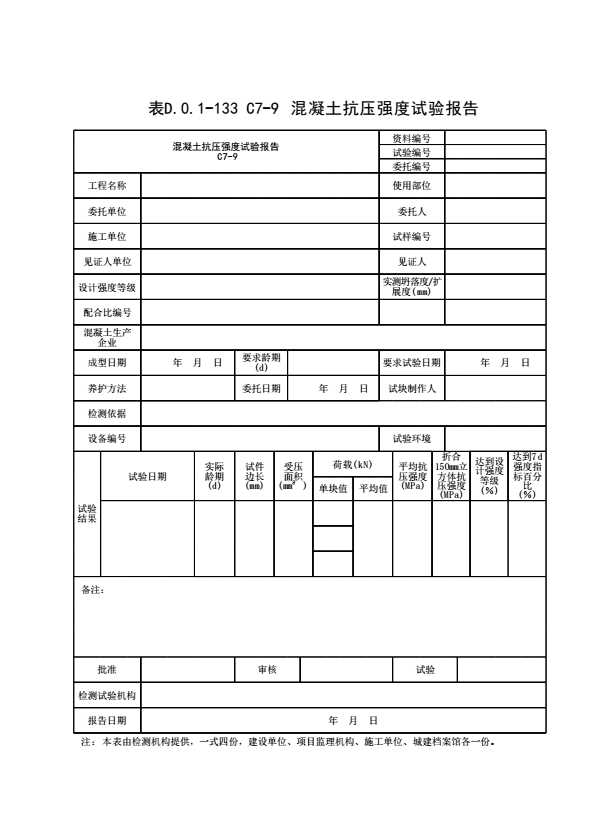 表格名称:表D.0.1-133 C7-9 混凝土抗压强度试验报告