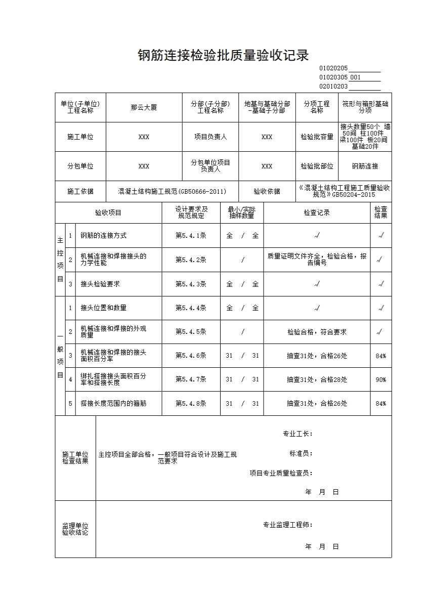 检查数量:按现行行业标准《钢筋机械连接技术规程》JGJ107和《钢筋焊接及验收规程》JGJ18的规定确定。