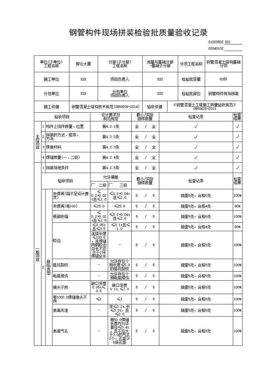 01020502_钢管混凝土构件现场拼装检验批质量验收记录