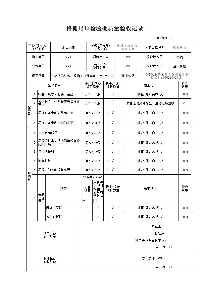 7.4.4 格栅吊顶工程的吊杆、龙骨和格栅的安装应牢固。