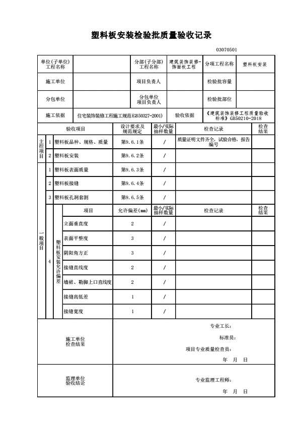 9.6.2 塑料板安装工程的龙骨、连接件的材质、数量、规格、位置、连接方法和防腐处理应符合设计要求。塑料板安装应牢固。