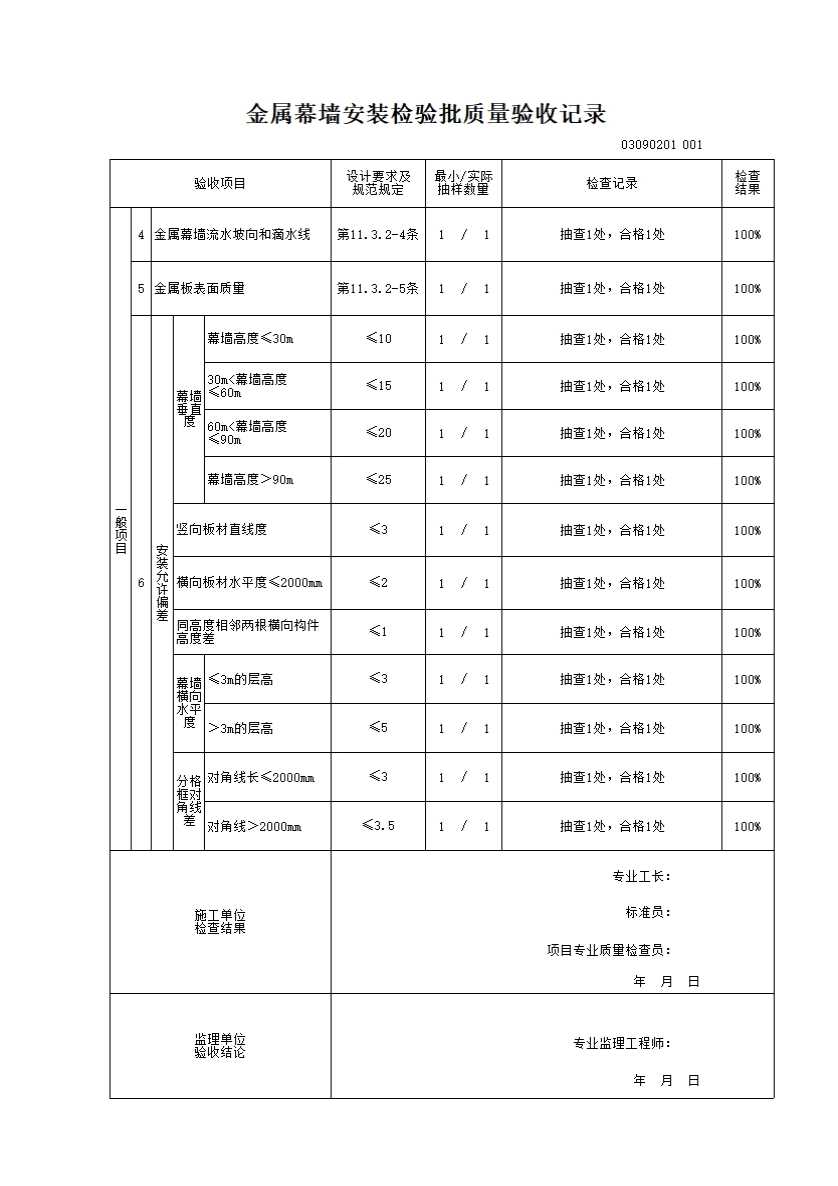 1 相同设计、材料、工艺和施工条件的幕墙工程每1000m2应划分为一个检验批,不足l000m2 也应划分为一个检验批;