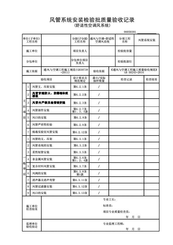 06050301_风管系统安装检验批质量验收记录(舒适性空调风系统)