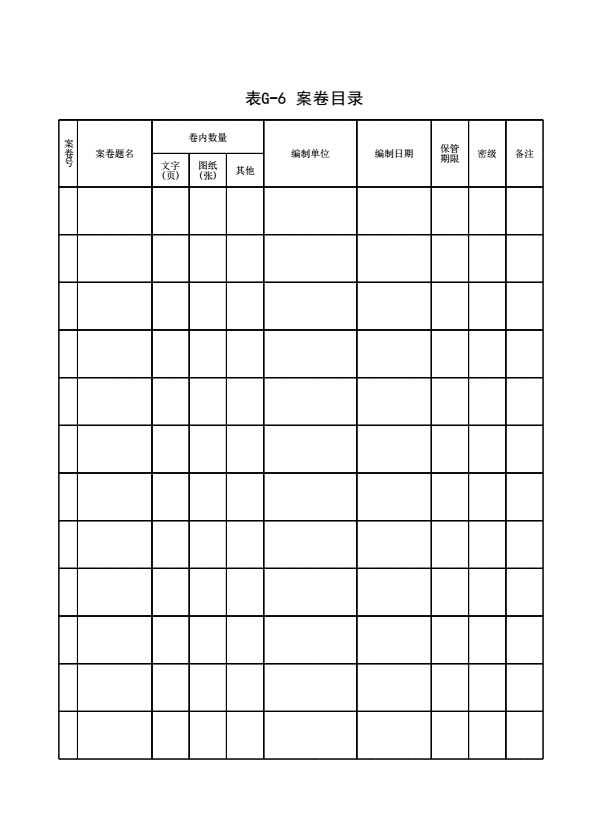 附录G 工程档案案卷封面、目录、备考表与移交书