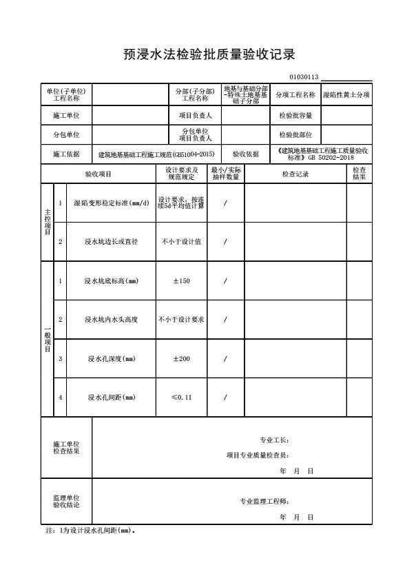 01030113_预浸水法检验批质量验收记录