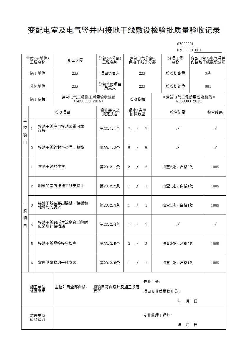 07030801 变配电室及电气竖井内接地干线敷设检验批质量验收记录