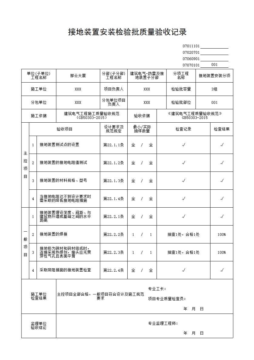 接地装置安装检验批质量验收记录