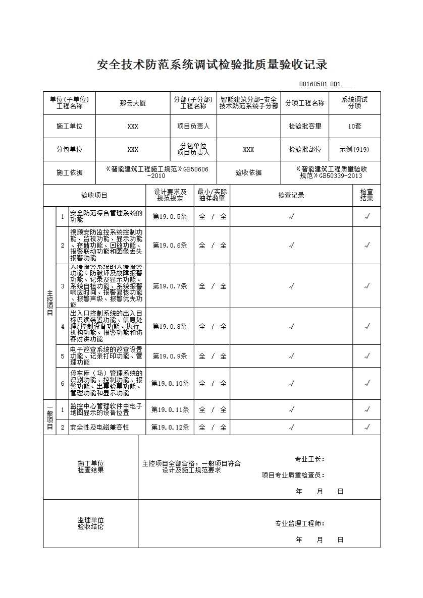 19.0.8 出入口控制系统的出入目标识读装置功能、信息处理/控制设备功能、执行机构功能、报警功能和访客对讲功能:应按现行国家标准《安全防范工程技术规范》GB50348中有关出入口控制系统检验项目、检验要求及测试方法的规定执行。