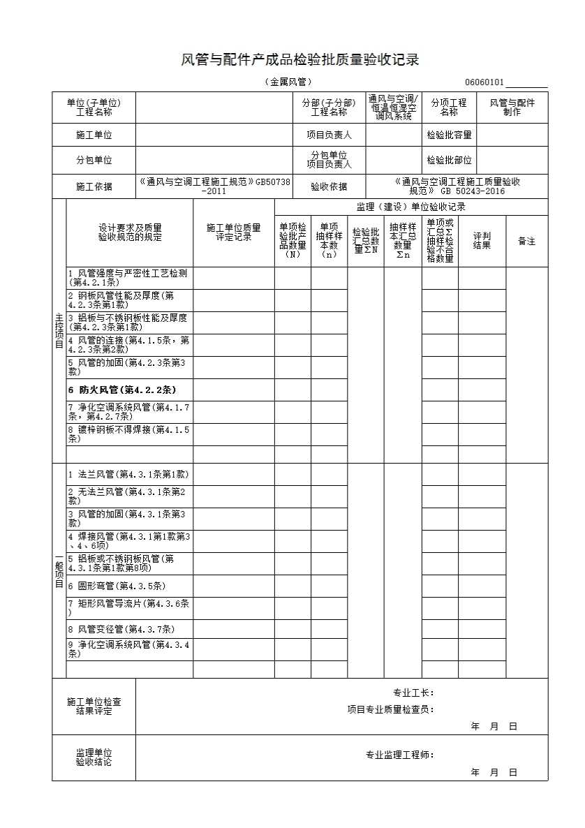 一、检验批划分:按材料、加工工艺、系统类别划分检验批。