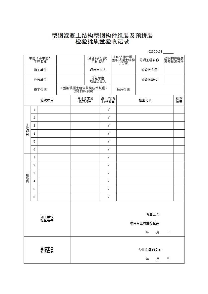 表格名称:02050401_型钢混凝土结构型钢构件组装及预拼装检验批质量验收记录
