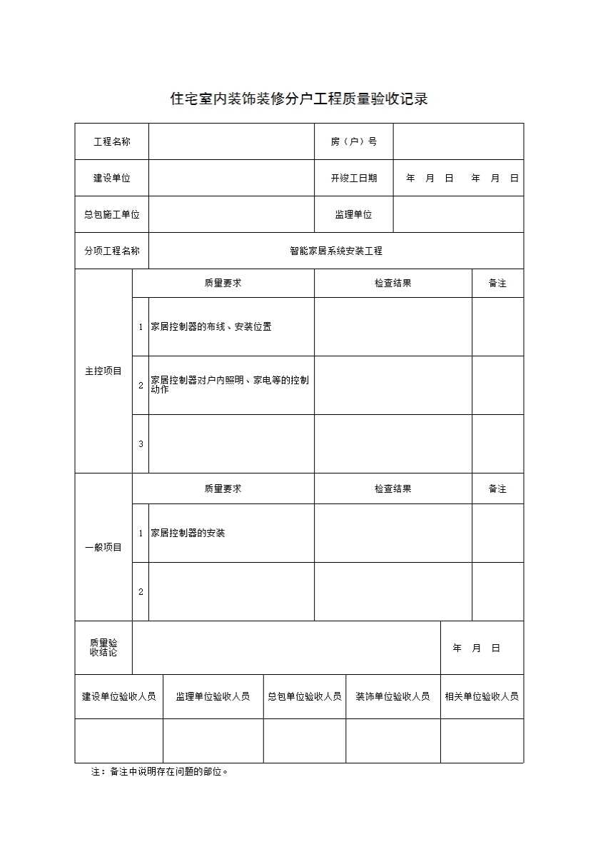 表格名称:5 智能家居系统安装工程质量验收记录
