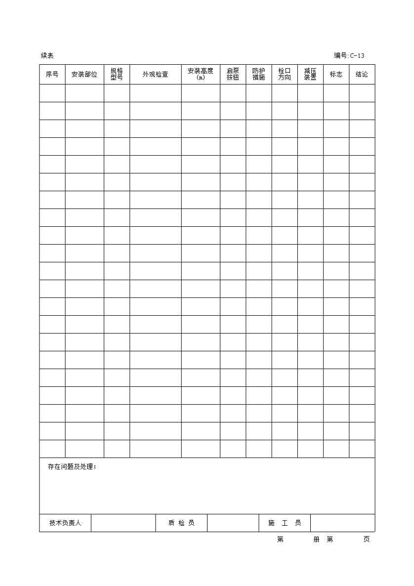 表格名称:消火栓灭火系统消火栓箱安装检查记录