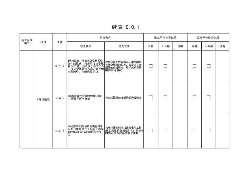 附录C 火灾自动报警系统材料、设备、配件进场检查和安装过程质量检查记录