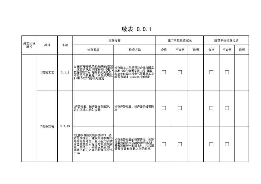 附录C 火灾自动报警系统材料、设备、配件进场检查和安装过程质量检查记录