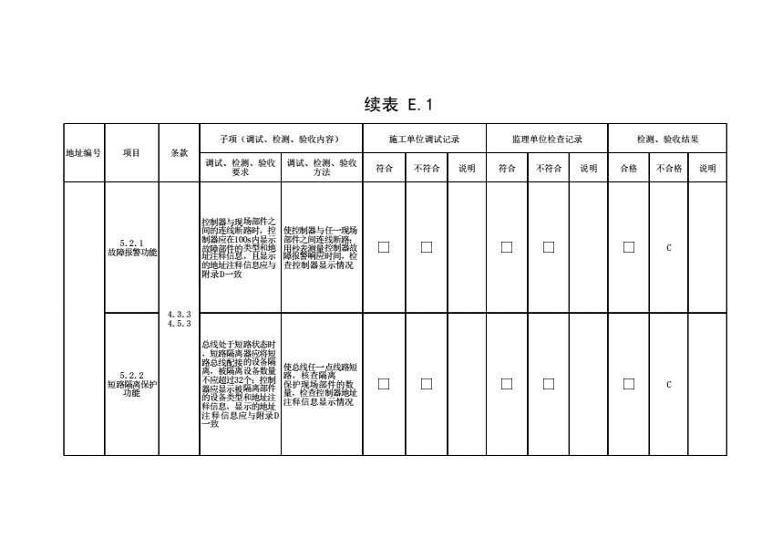 表格名称:表E.1 火灾报警控制器、消防联动控制器、火灾报警控制器(联动型)及其现场配接部件调试、检测、验收记录(续表18)