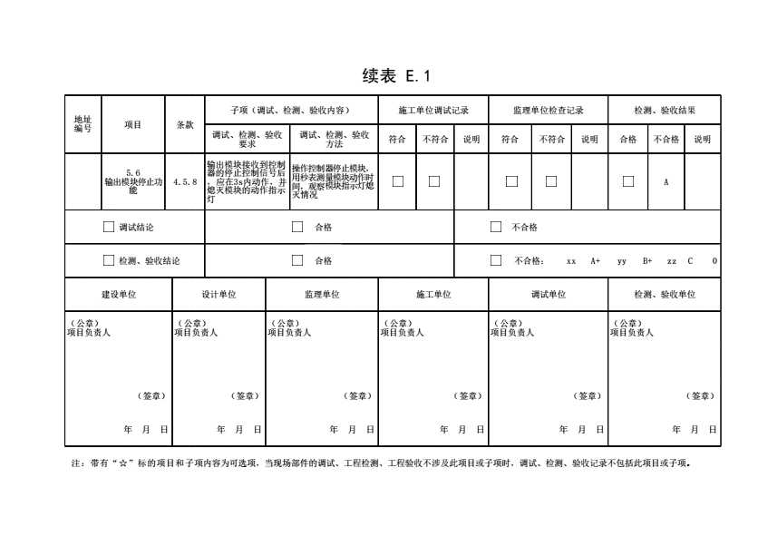 表E.1 火灾报警控制器、消防联动控制器、火灾报警控制器(联动型)及其现场配接部件调试、检测、验收记录(续表82)