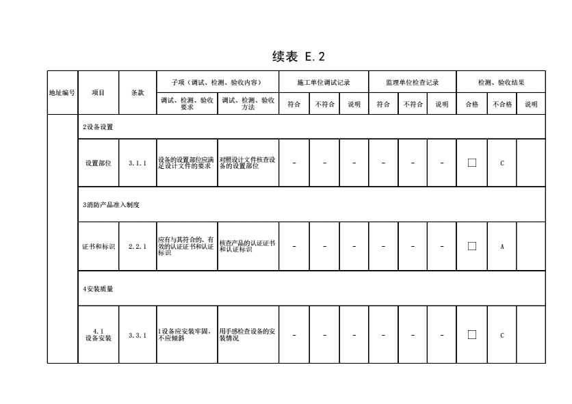 表格名称:表E.2 家用火灾安全系统调试、检测、验收记录(续表7)